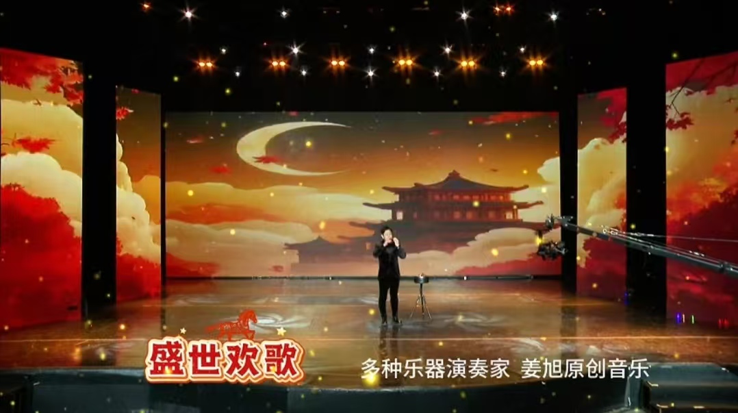 央视多栏目特约嘉宾、多种乐器演奏家姜旭带来原创作品《盛世欢歌》,多种乐器联奏奏响新春欢曲,旋律激昂、喜气洋洋,为现场增添浓浓年味