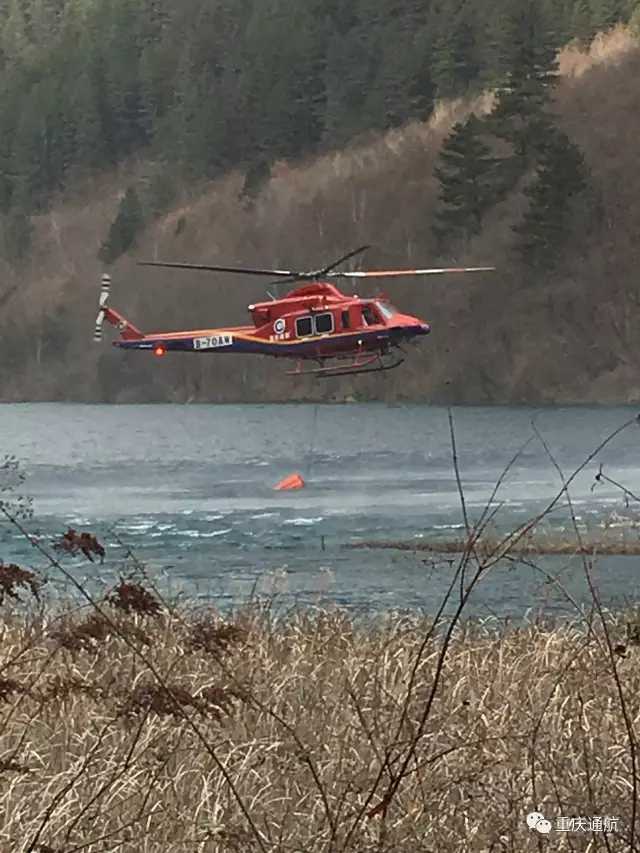 BELL412在海拔2400米高度九寨沟附近水域取水