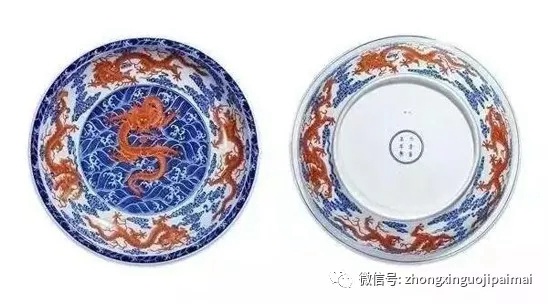 清雍正青花矾红彩海浪纹九龙图大盘,2017年6月5日北京保利,成交价: 1495万元