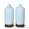本品器形,简洁素雅,小口短颈,上配原盖,盖平形,中置宝珠钮圆肩筒身,圈足。瓶及盖通体饰粉青釉,此器为雍正朝创新之品,符合当朝皇帝清雅品味。此瓶釉质均匀纯净,润泽类玉,足见雍正帝对茶具之严格要求。雍正一朝制瓷,多鉴皇帝本人艺术情趣,故佳器屡出,既有独创新例,亦有典雅名器。此外,器俱反映时人饮食习惯,例如本品瓶,则与储茶及品茶相关。瓶底亦整施粉青釉,于中双圈内青花书“大清雍正年制”六字双行楷书款。