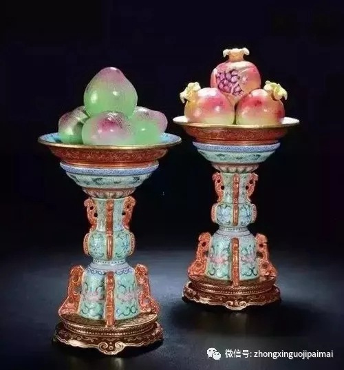 清乾隆洋彩塑果高足供盘一对,2017年6月8日北京东正,成交价: 1610万元