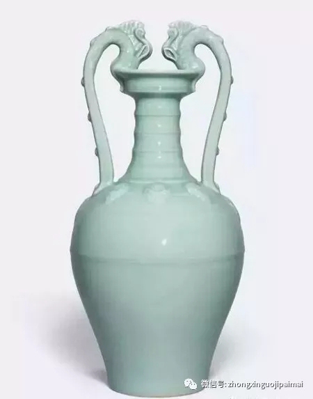 清雍正粉青釉贴花双龙盘口尊,2017年5月31日香港佳士得,成交价: 1.08亿元
