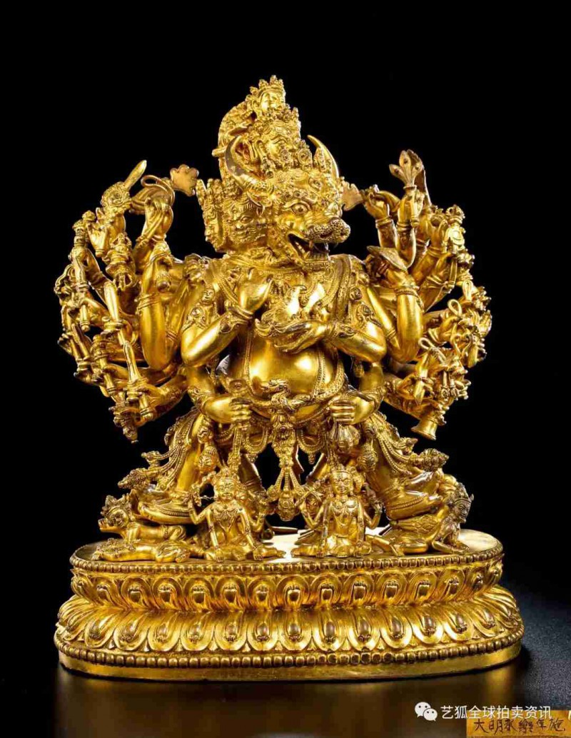 清乾隆(宫廷御制) 铜鎏金大威德金刚三连尊