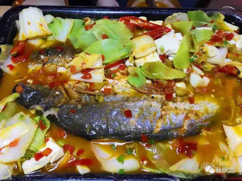 烤鱼里放了很多泡椒,吃起来鲜辣鲜辣的。