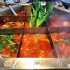 盆子里一面是鸡串,另一面是各类蔬菜串串。