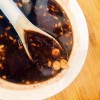 冰粉里要放上满满的红糖芝麻,因为香;